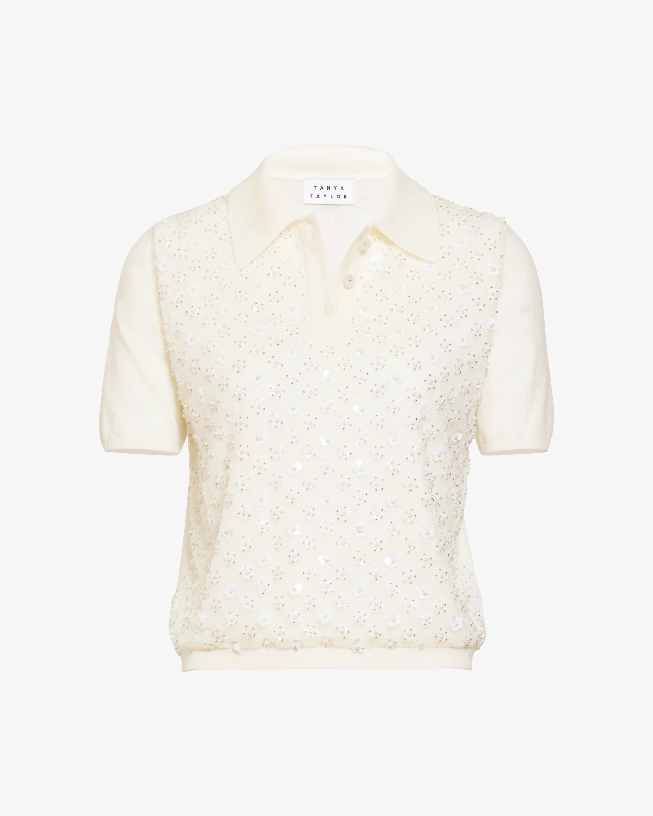 Designed in an extra fine lightweight merino wool with a collared v-neck and sequin detailing. Camilla is a versatile polo that delivers a luxurious feel and comfort while adding polish to any look.